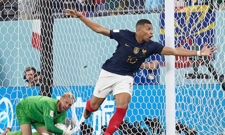 بتسجيله لهدفي فوز المنتخب الفرنسي على نظيره الدنماركي (1-2)، التحق كيليان مبابي بالاكوادوري إينير فالنسيا في صدارة هدافي مونديال قطر حتى الآن بواقع ثلاثة أهداف لكل منهما؛ كما أنه عادل زين الدين زيدان من حيث عددُ الأهداف مع المنتخب الفرنسي ب31 هدفاً لكل منهما؛ وأيضاً تجاوز تييري هنري ليصبح ثاني أفضل هداف فرنسي في تاريخ المونديال (سبعة أهداف). هذا كل وهو مايزال في 23 من عمره.