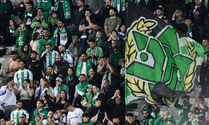 وعرض مشجعو نادي مكابي حيفا الإسرائيلي لافتة “قتلة منذ عام 1939” على صف من المقاعد خلال مباراة الفريق في بطولة دوري المؤتمر الأوروبي ضد راكوف تشيستوخوفا التي أقيمت في ديبريتسين في المجر لدواع أمنية.