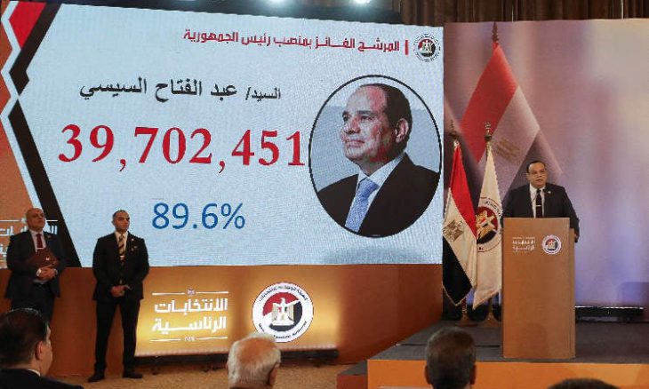 وأعلنت الهيئة الوطنية للانتخابات النتائج خلال مؤتمر صحافي بثه التلفزيون الرسمي، أعلن فيه رئيس الهيئة حازم بدوي “اعتماد النتيجة النهائية للانتخابات الرئاسية متضمنا فوز عبد الفتاح السيسي .. بمنصب رئيس الجمهورية لمدة ست سنوات ميلادية”، حاصدا 39,7 مليون صوت أي 89,6 % من أجمالي الأصوات الصحيحة.