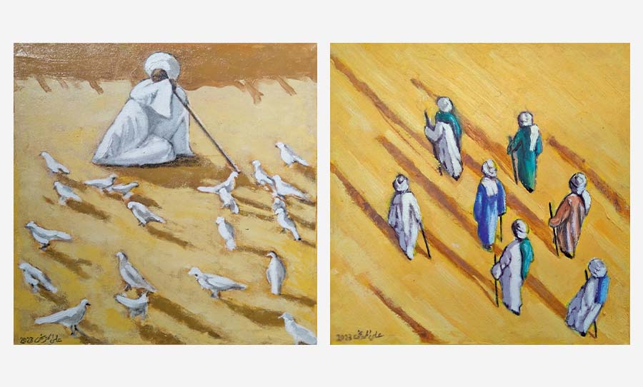 القاهرة ـ «القدس العربي»: علي المريخي، مرفت شاذلي، ومحمود الشنقرابي ثلاثة فنانين من جنوب مصر، يستوحون أعمالهم الفنية من العالم القصصي والروائي والمسرحي للكاتب حجاج أدول مواليد عام 1944 الذي استحضر بدوره عالم بلاد النوبة بناسه ومخلوقاته وأساطيره، نذكر منها.. (هضبة المساخيط)، (معتوق الخير)، (ليالي المسك العتيقة)، (تسابيح نيلية)، و(إغراق عنخ).