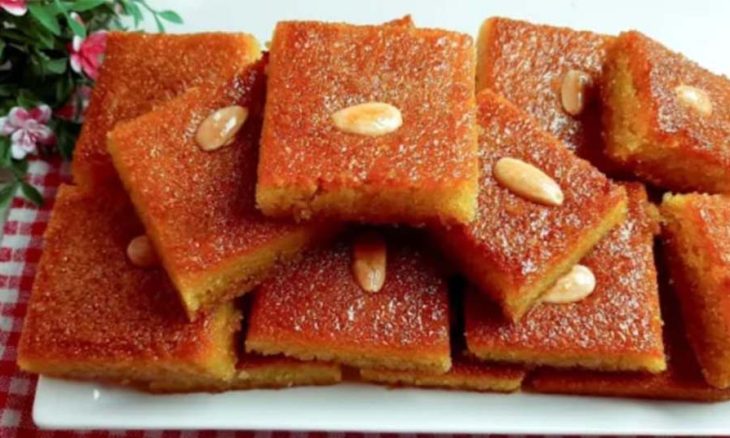 ندخل النمورة الفرن لمدة 30 دقيقة حتى تنضج وتصبح ذهبية اللون.