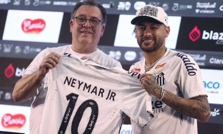 سانتوس (البرازيل): رحب الآلاف من مشجعي فريق سانتوس البرازيلي لكرة القدم، مساء الجمعة، بنيمار، العائد إلى ناديه الذي نشأ فيه، بحفل موسيقي في ملعب الفريق، تحت لافتة إلكترونية مكتوب عليها “الأمير عاد”.