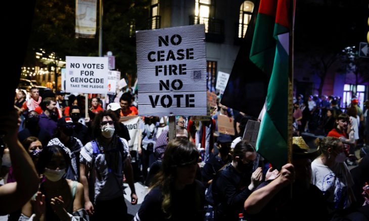 فعندما قاطع ناشطون مناهضون للحرب خطابا لها في آب/ أغسطس، قالت هاريس بحدة: “إذا كنت تريد فوز دونالد ترامب، فقل ذلك”. وفي المؤتمر الوطني الديمقراطي، رفضت حملتها نداء من الناشطين للسماح لأمريكي فلسطيني بالتحدث من على المنصة الرئيسية. وقبل أيام قليلة من الانتخابات، قال الرئيس السابق بيل كلينتون الذي أرسلته حملة هاريس لحشد الدعم في ميشيغان، إن حماس “أجبرت” إسرائيل على قتل المدنيين الفلسطينيين باستخدامهم كدروع بشرية.