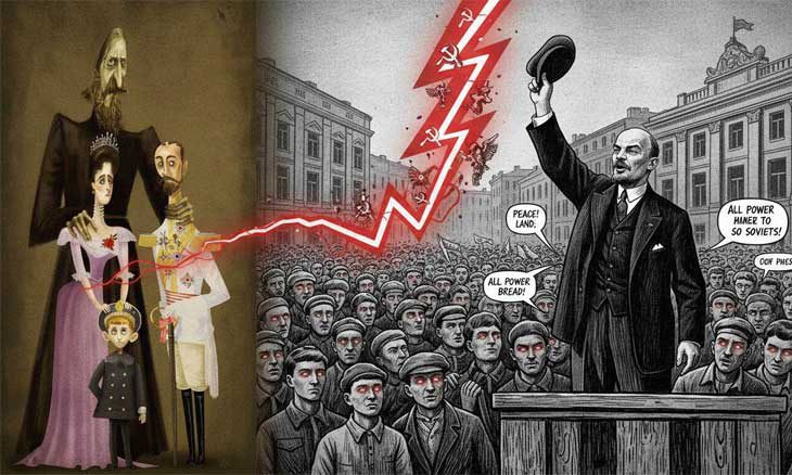 وفقا لتحليل الكاتب، لم تكن الثورة الروسية نتيجة لعوامل أيديولوجية واقتصادية فحسب، بل كان لها أيضا دافع بيولوجي، وتحديدا طفرة في جين التخثر نشأت في سلالة الملكة فيكتوريا. أضعفت هذه الغرابة الجينية، التي انتقلت عبر الزيجات بين الأسر الحاكمة المتزاوجة في أوروبا، الاستقرار السياسي للإمبراطورية الروسية من الداخل، ما يوضح كيف يمكن للبيولوجيا الفردية أن تؤدي إلى عواقب تاريخية كبرى.