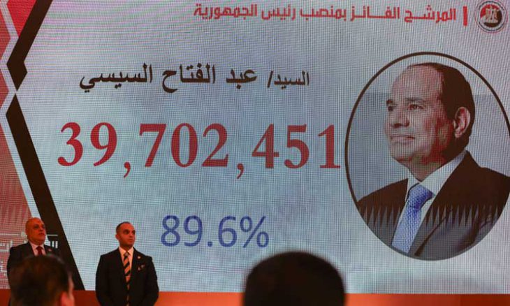 وأعلنت الهيئة الوطنية للانتخابات الاثنين، فوز السيسي بـ89.6 في المئة من الأصوات في الانتخابات التي جرت من 10 إلى 12 ديسمبر/ كانون الأول الجاري.