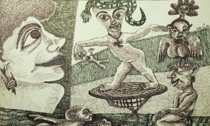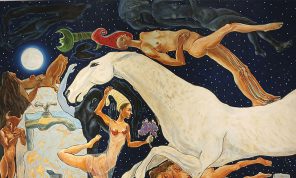 نساء ميثولوجيات في طور التكوين للتشكيلي المغربي نصر الدين بوشقيف