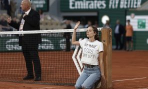 محتجّة تربط نفسها بالشبكة وتوقف مباراة الدور قبل النهائي لفرنسا المفتوحة