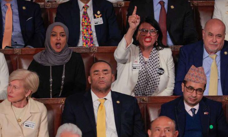 إلهان عمر تستنكر اعتقال ضيفة لها خلال خطاب ترامب في الكونغرس بعد وقوفها احتجاجًا