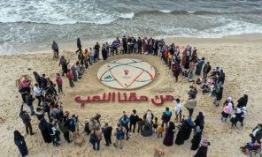 لوحة رملية لتذكير العالم بحق الأطفال في غزة باللعب- (صور)