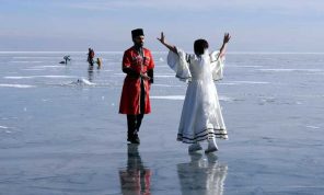 تركيا.. رقصات قوقازية فوق بحيرة تشلدر المتجمدة- (صور)
