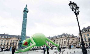 عرض نسخة عملاقة من الضفدع المنفوخ «كيرميت» في قلب باريس يُثير الجدل