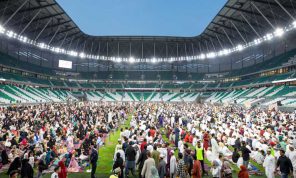 أمير قطر يصلي في لوسيل.. واستاد المدينة التعليمية أول ملعب لكأس العالم يستخدم لصلاة العيد- (صور)
