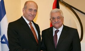 عباس خلال مؤتمر صحافي مع أولمرت: مستعدون لبدء مفاوضات مع الإسرائيليين