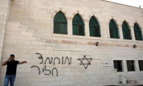 مستوطنون يخطون شعارات على جدران مسجد شرقي رام الله
