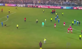 جماهير الهلال السوداني تقتحم أرض الملعب خلال مباراة الأهلي المصري- (فيديو وصور)