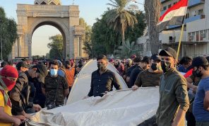 بغداد.. محتجون يغلقون أحد مداخل “المنطقة الخضراء”