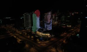 أبراج الدوحة تتوشح بعلم فلسطين وصورة شيرين أبو عاقلة