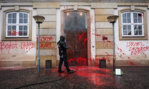 مؤيدون لفلسطين يرشون مبنى خارجية الدنمارك بطلاء أحمر- (صور)