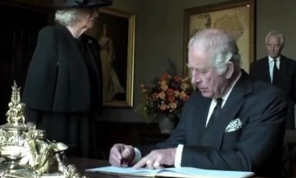 تسرب الحبر من قلم يزعج الملك تشارلز أثناء حفل توقيع- (فيديو)