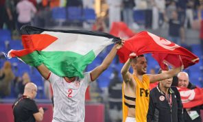 لاعبو المنتخب التونسي يرفعون العلم الفلسطيني احتفالا بتأهلهم لنهائي كأس العرب- (صور)