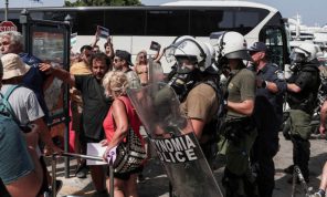 شرطة مكافحة الشغب تشتبك مع متظاهرين في جزيرة يونانية أثناء زيارة سفينة سياحية إسرائيلية- (صور وفيديوهات)