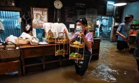 مطعم تغمره مياه الفيضانات يجذب الزبائن في بانكوك- (صور)