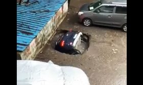 حفرة تبتلع سيارة خلال ثوانٍ في الهند