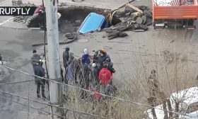 الأرض تبتلع سيارة في أحد شوارع روسيا