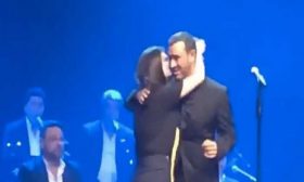 كاظم الساهر يحتضن معجبة اقتحمت المسرح حاملة العلم العراقي!- (فيديو)