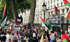 اعتصام أمام مكتب ستامر في لندن بعد مجزرة مواصي خان يونس- (فيديوهات)