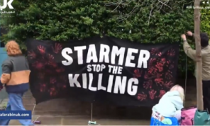 مناصرون لقضية فلسطين يحتجون أمام منزل زعيم المعارضة في لندن- (فيديو)