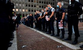 غضباً على وزير الداخلية الفرنسي.. الشرطة ترمي الأصفاد- (صور وفيديو)
