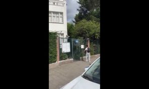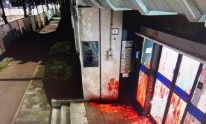 تلطيخ بوابة سفارة إسرائيل في لاهاي بطلاء أحمر احتجاجا على الإبادة في غزة