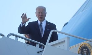 موقف محرج لبايدن بعد خروجه من مروحية- (شاهد)